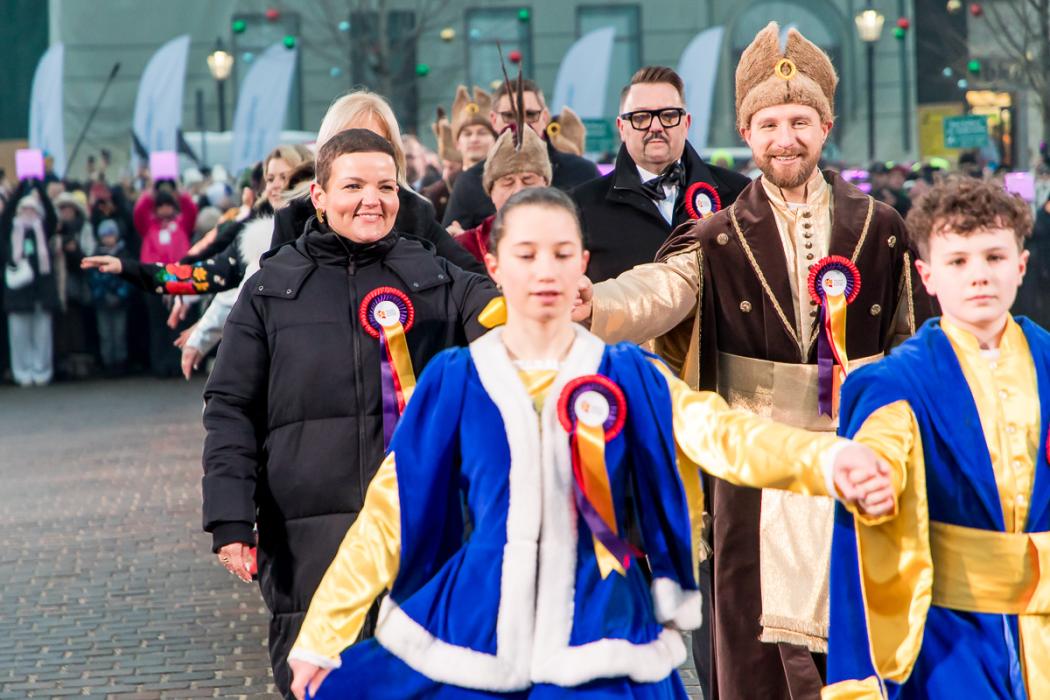 Inauguracja miała także symboliczny, wspólnotowy wymiar. Jeszcze przed koncertem ulicami miasta przeszły cztery barwne korowody, które spotkały się na Placu Wojska Polskiego. Tam, w obecności przedstawicieli władz państwowych, samorządowych oraz zaproszonych gości, uczestnicy wkroczyli w rok Polskiej Stolicy Kultury, tańcząc wspólnie poloneza.